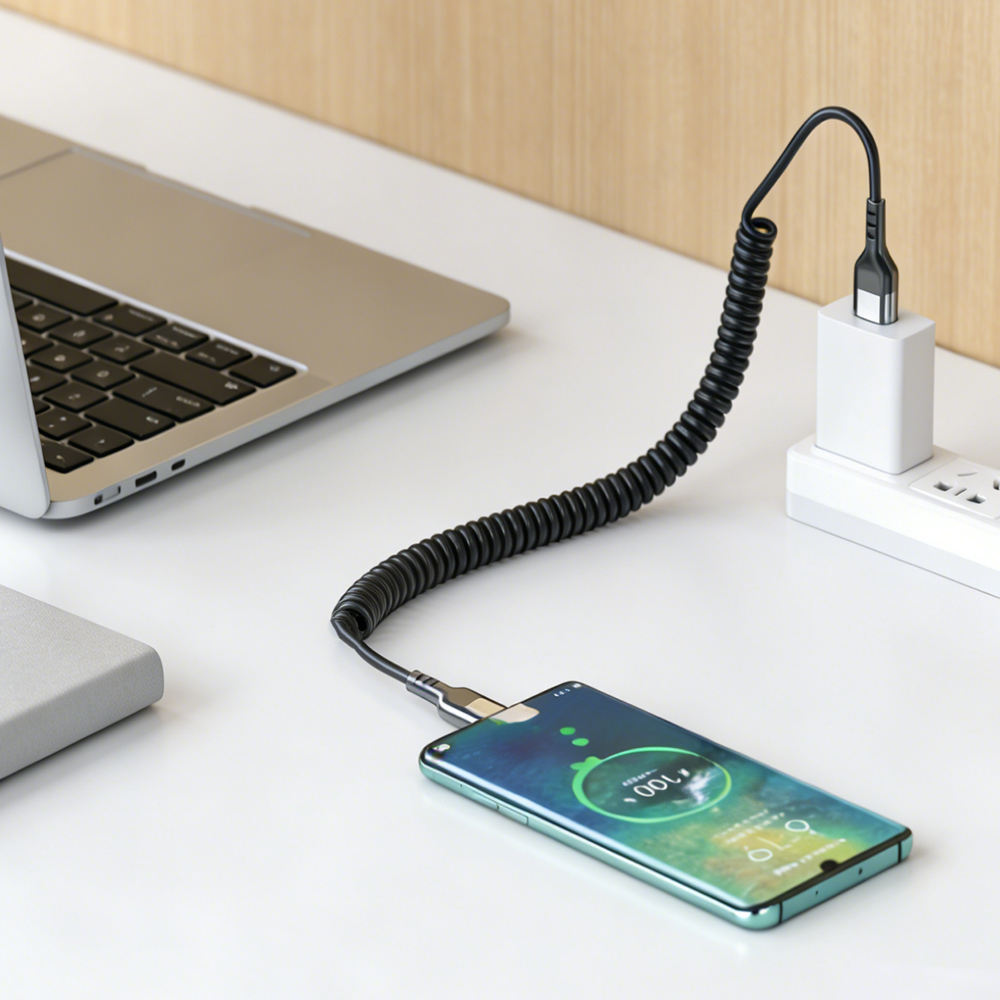 Key Features: Coiled Design (Space-Saving, Anti-Tangle), Carplay Compatible, Degradable Eco-Friendly Material, Durable TPE Jacket