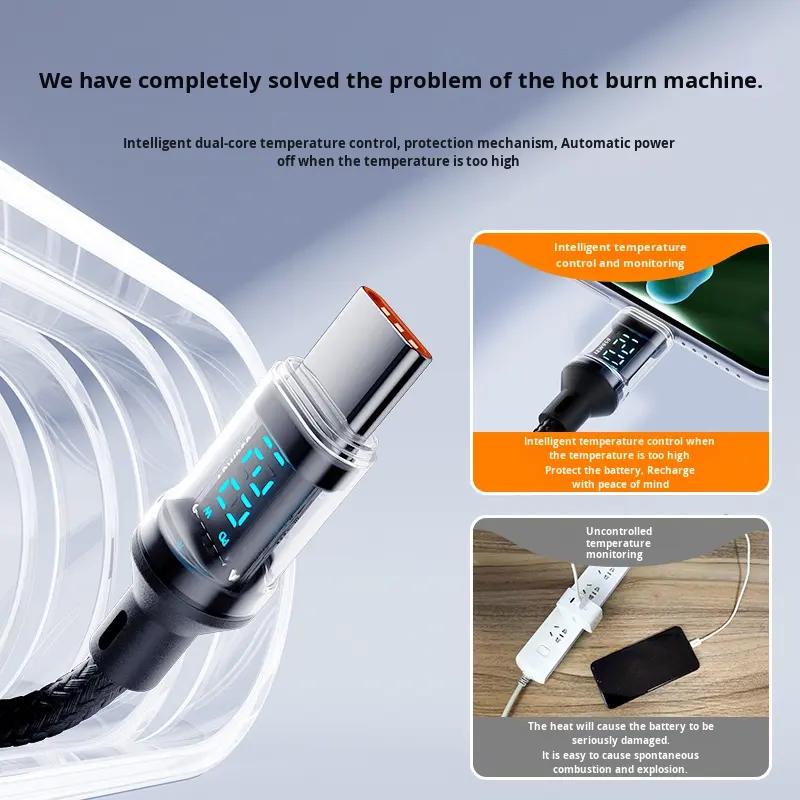 Key Features: LED Digital Display, Transparent Shell Design, Durable Nylon Braiding, High-Speed Charging & Data Transfer